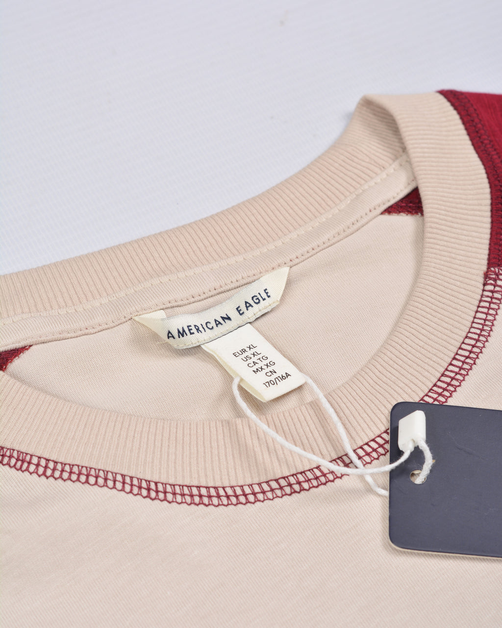 Ae Super Soft Raglan Logo Graphic T-shirt Contrast Stitch Beige/Red