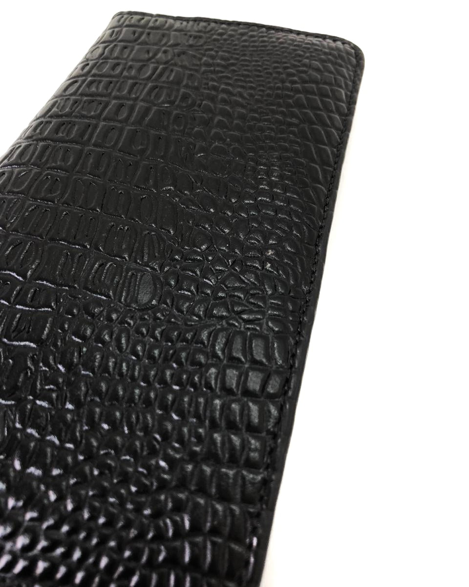 Leather long wallet Black Crocodile Embossed