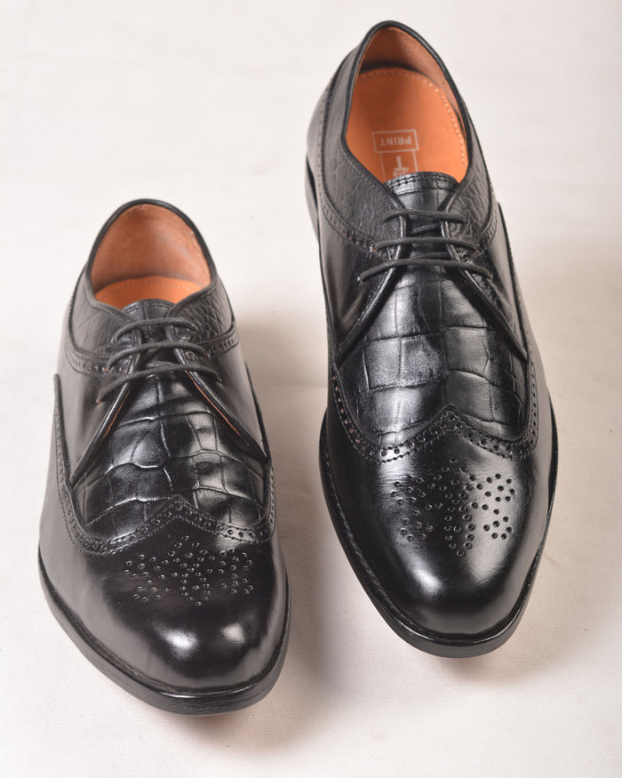 Classic oxford shoes. Pointed toe. Laces with five eyelets. Classy embossed textured. Decorative stitching on the upper. Ultra soft insole with comfort...