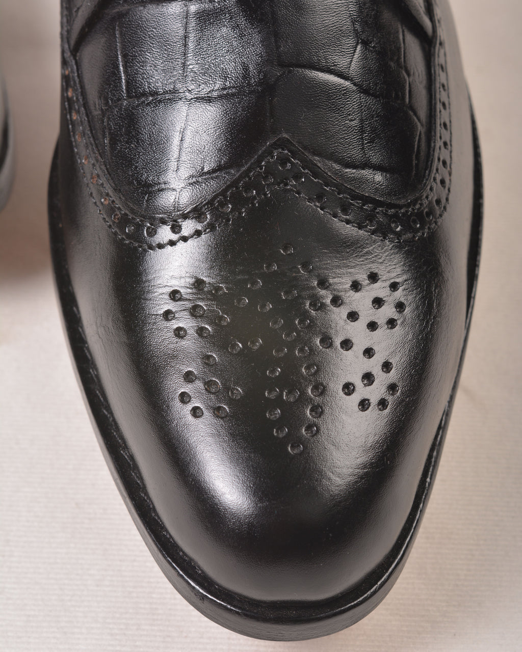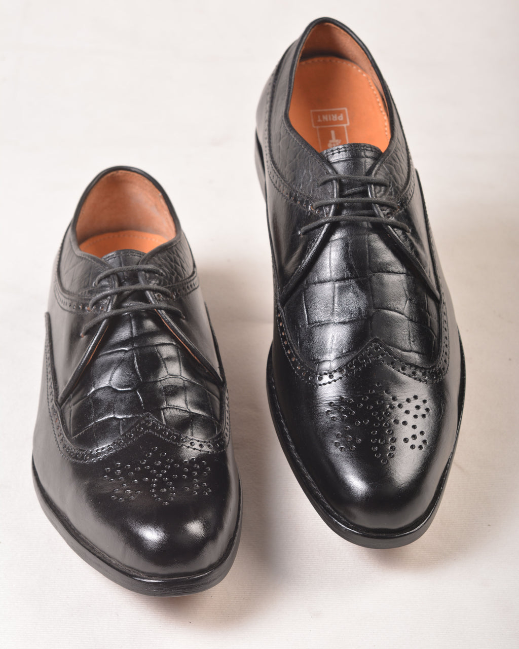 Classic oxford shoes. Pointed toe. Laces with five eyelets. Classy embossed textured. Decorative stitching on the upper. Ultra soft insole with comfort cushioning. Durable rubber outsole. Style with comfort at every step.
