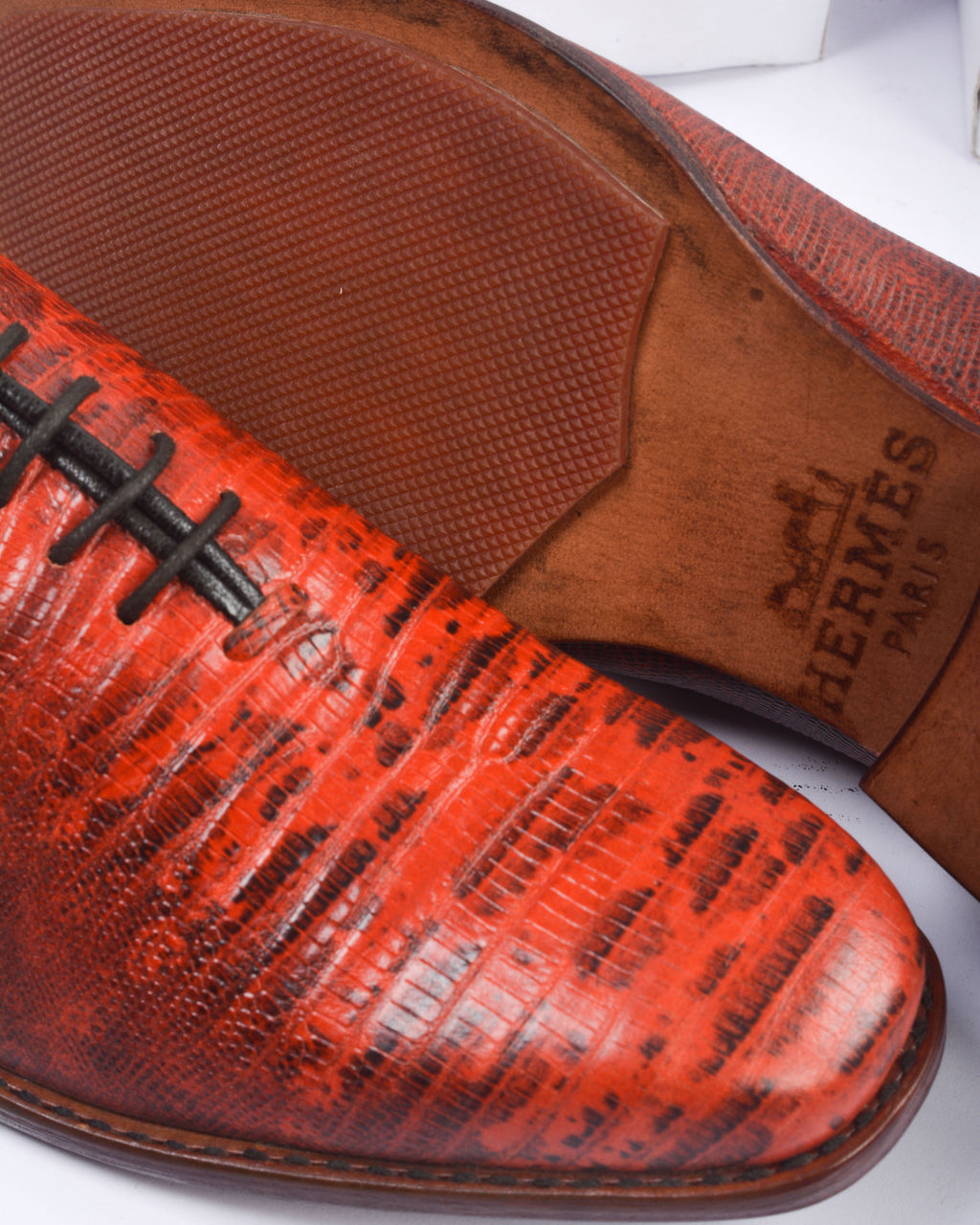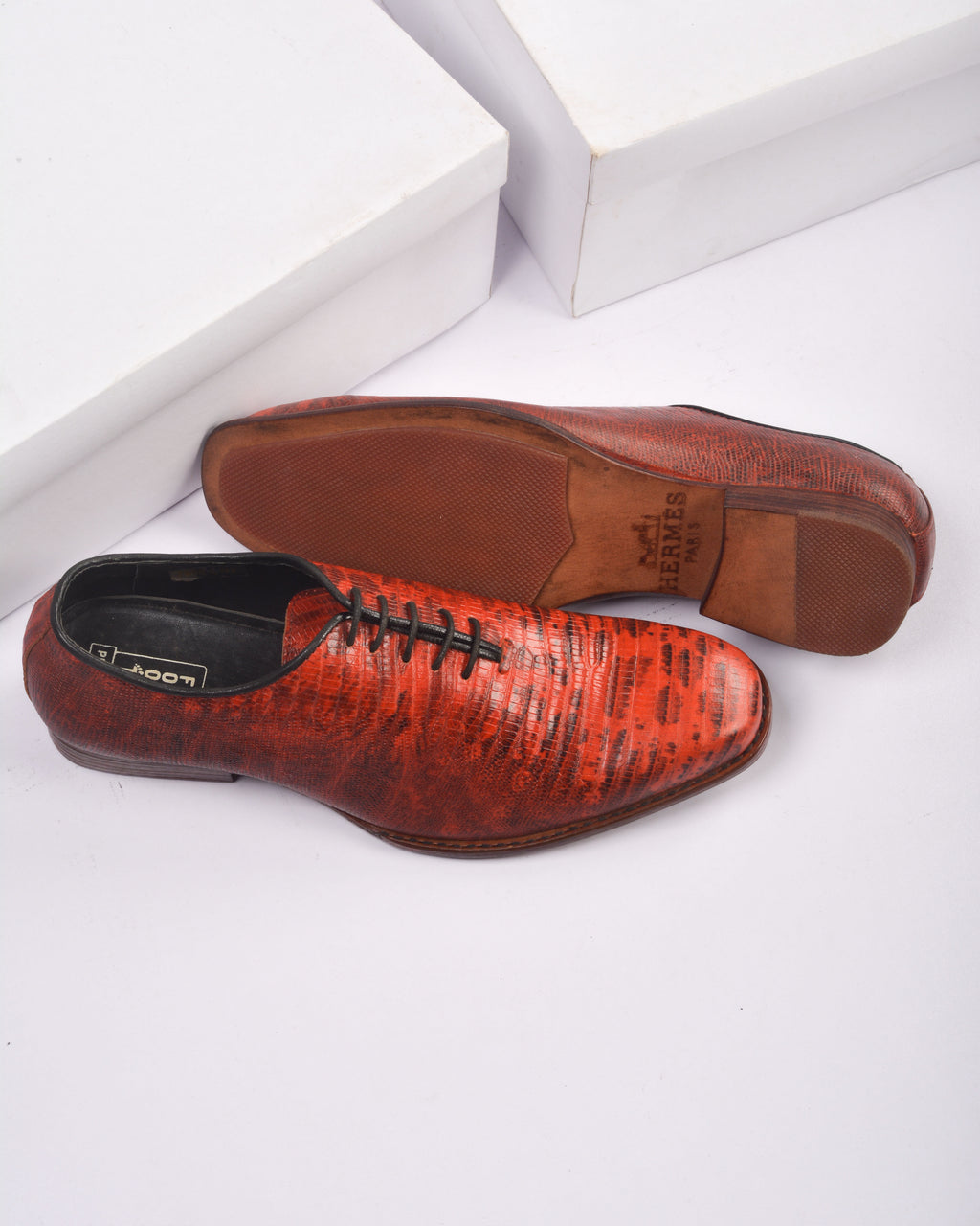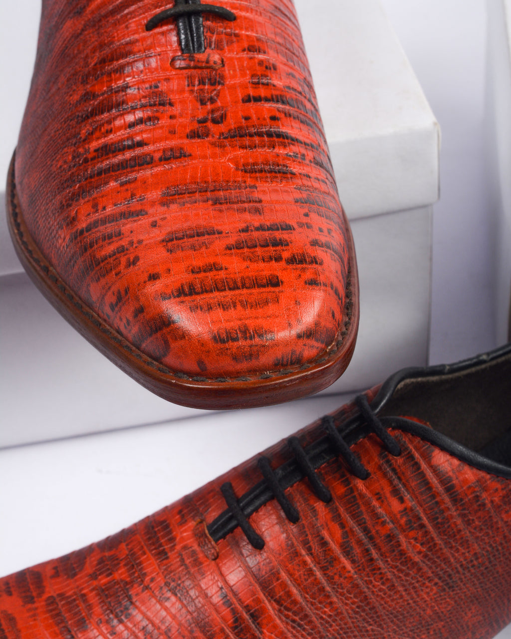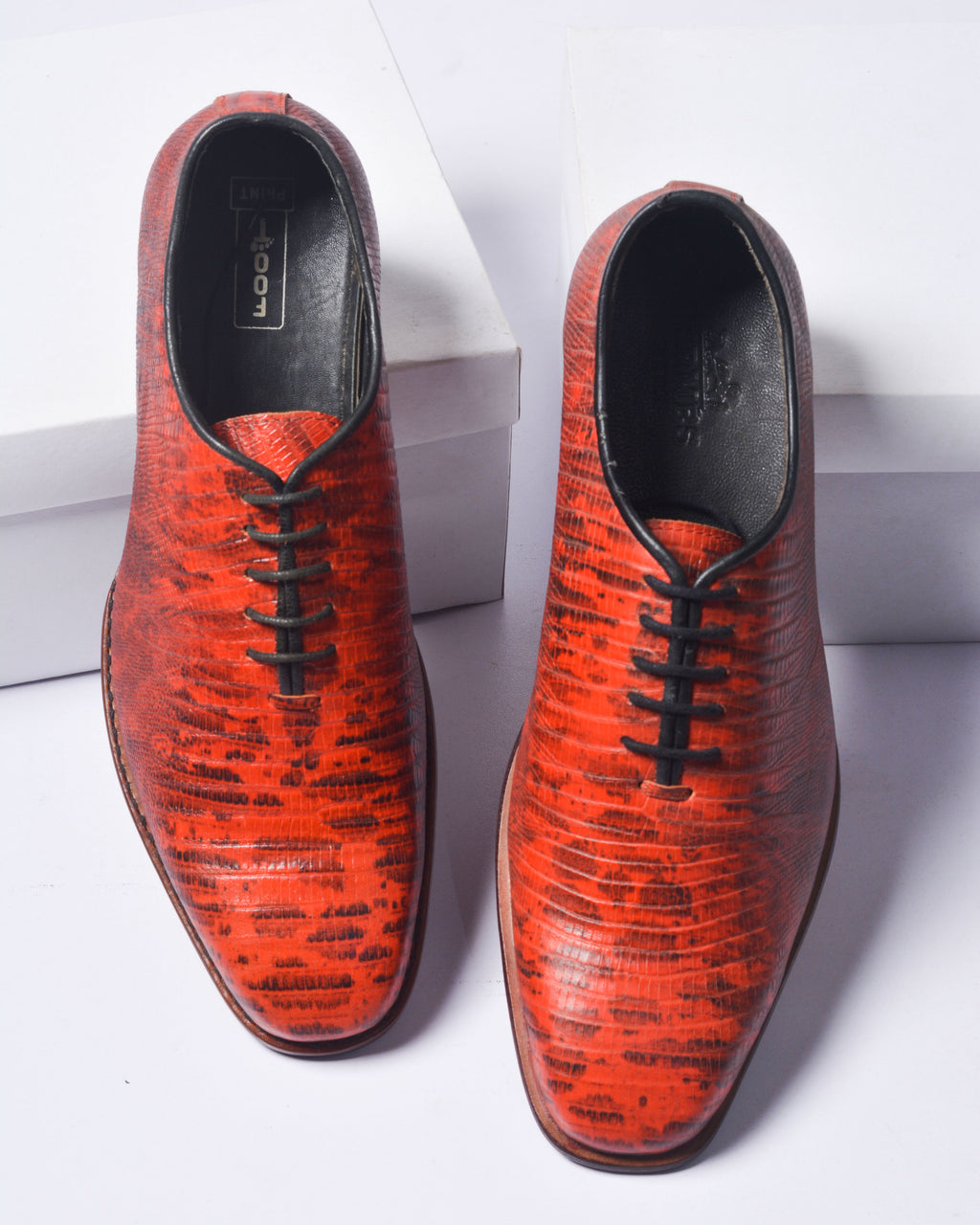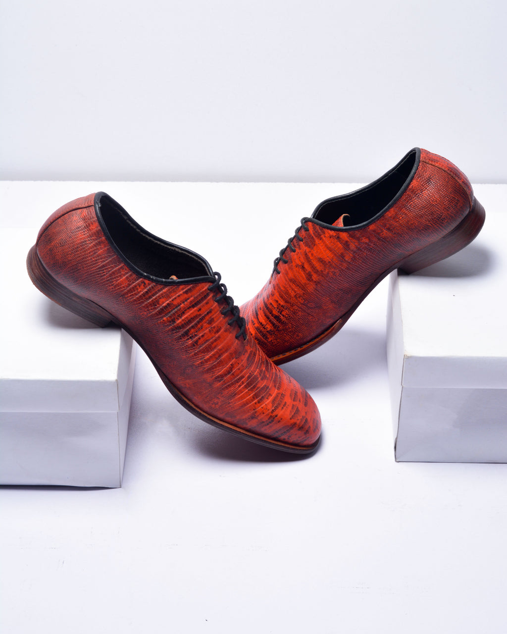 FOOTPRINT EMBOSSED OXFORD PREMIUM SHOES RED