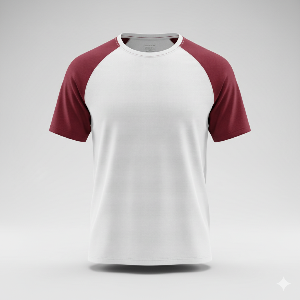 Raglan Tee - Corporate - Performance Mesh Lycra - White/Maroon