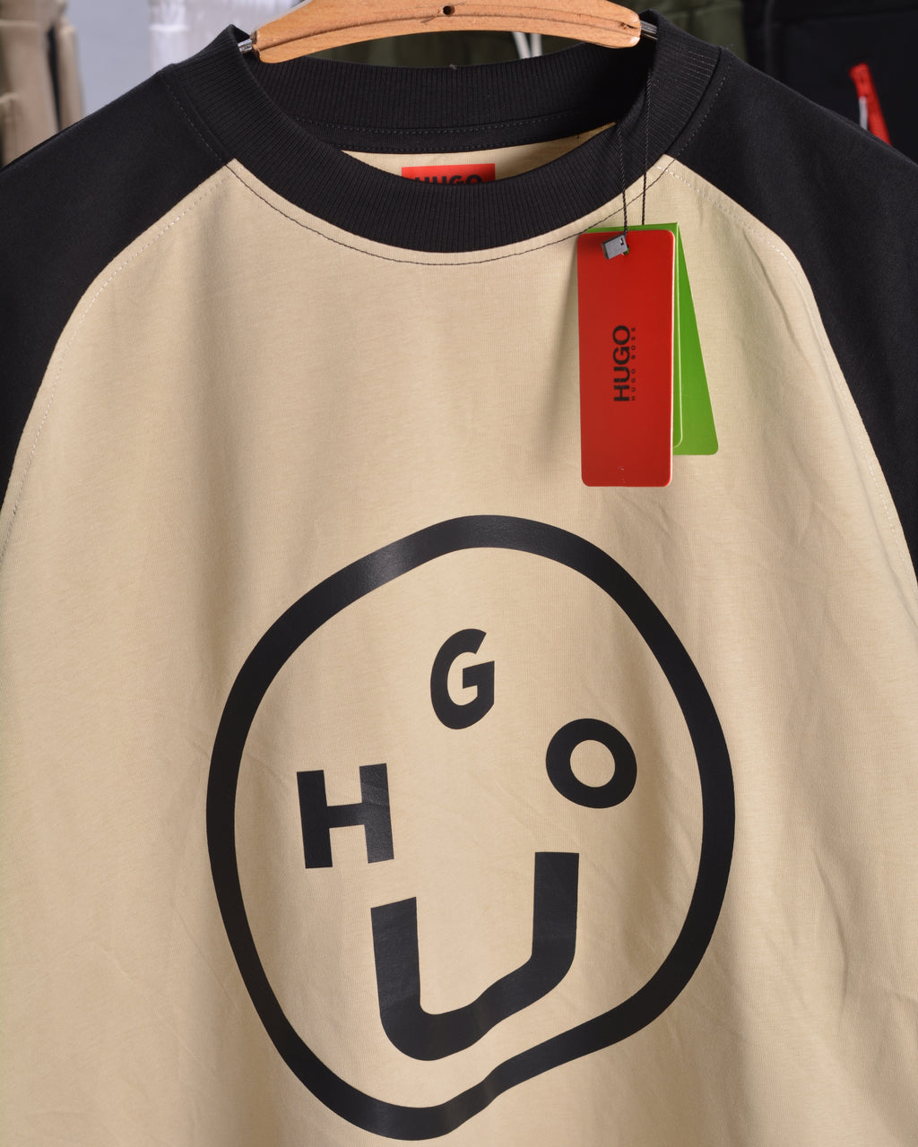 Hugo HUGO NIMPER Drop Shoulder Raglan T shirt Black/beige