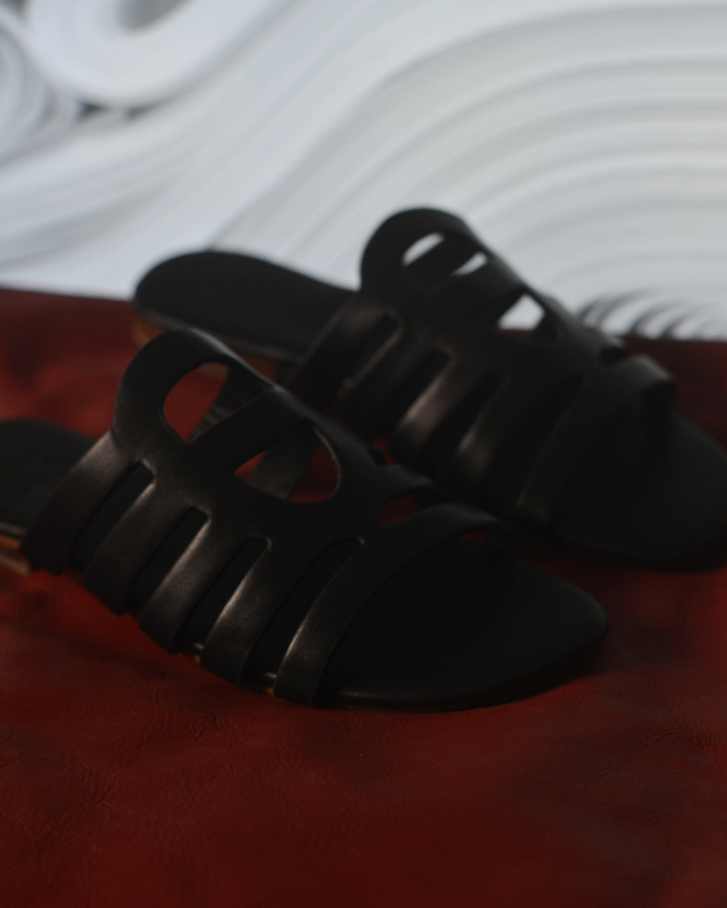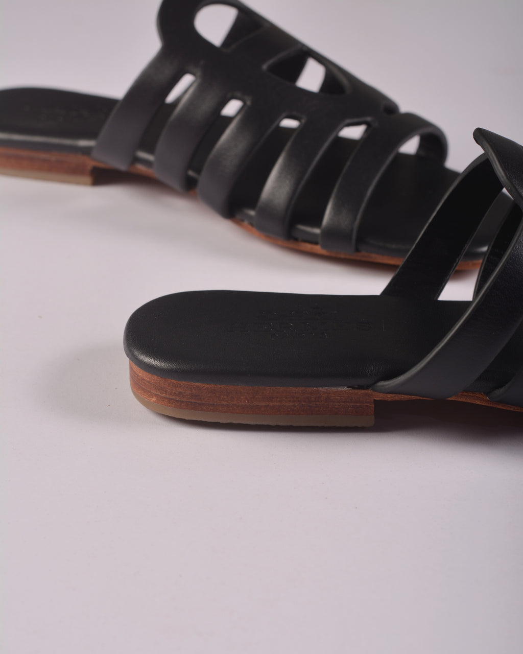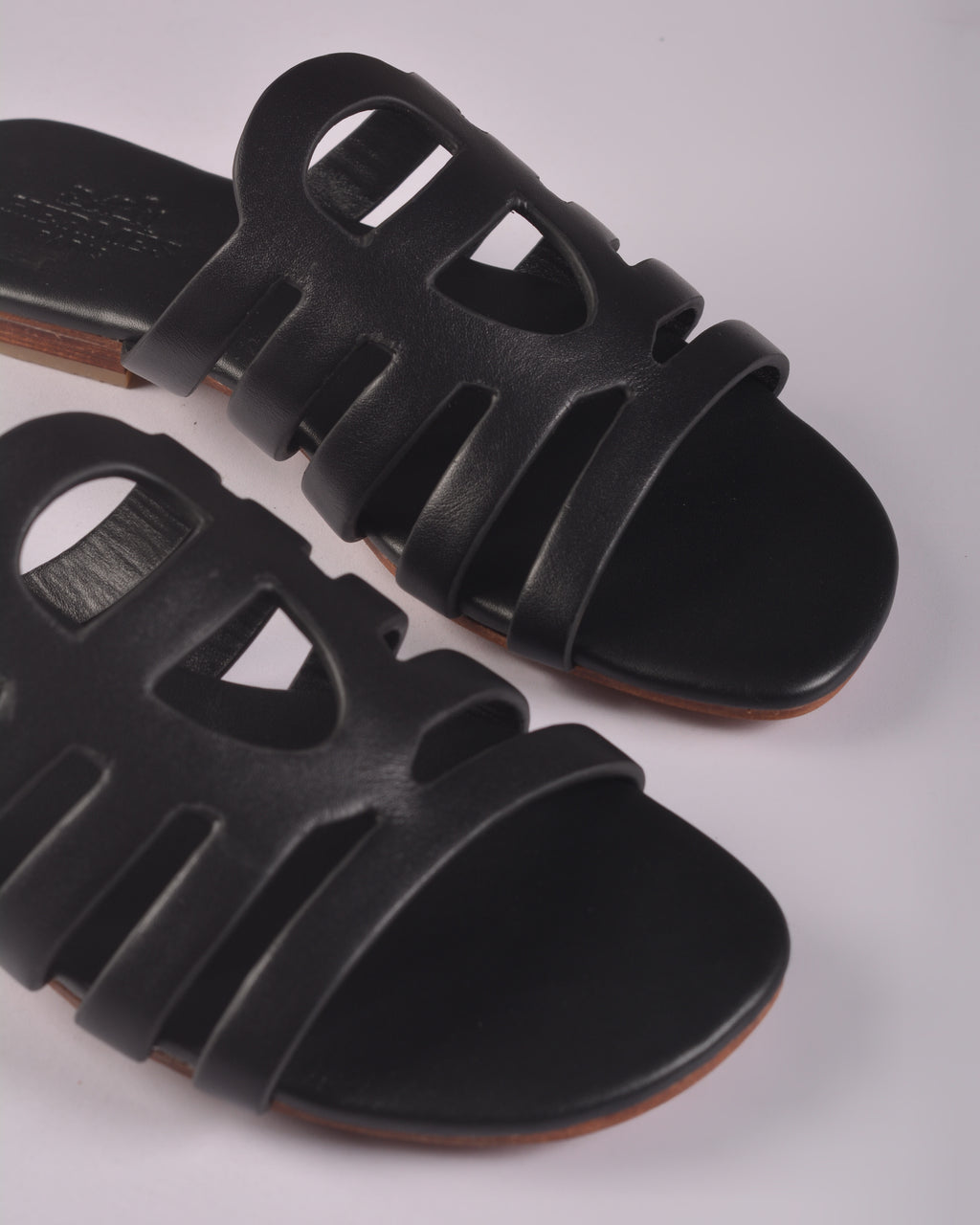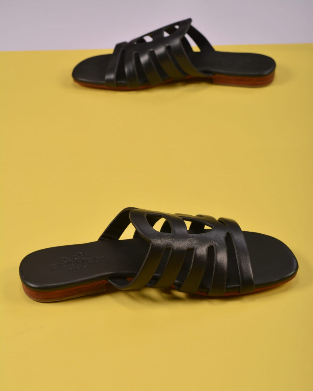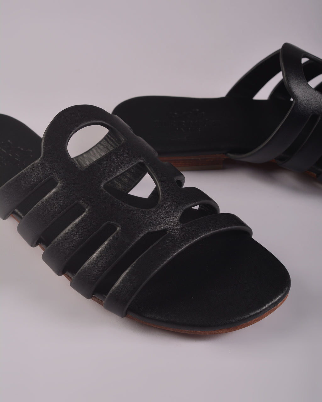 Sandal in calfskin with "Chaine d'Ancre" motif and strappy silhouette.