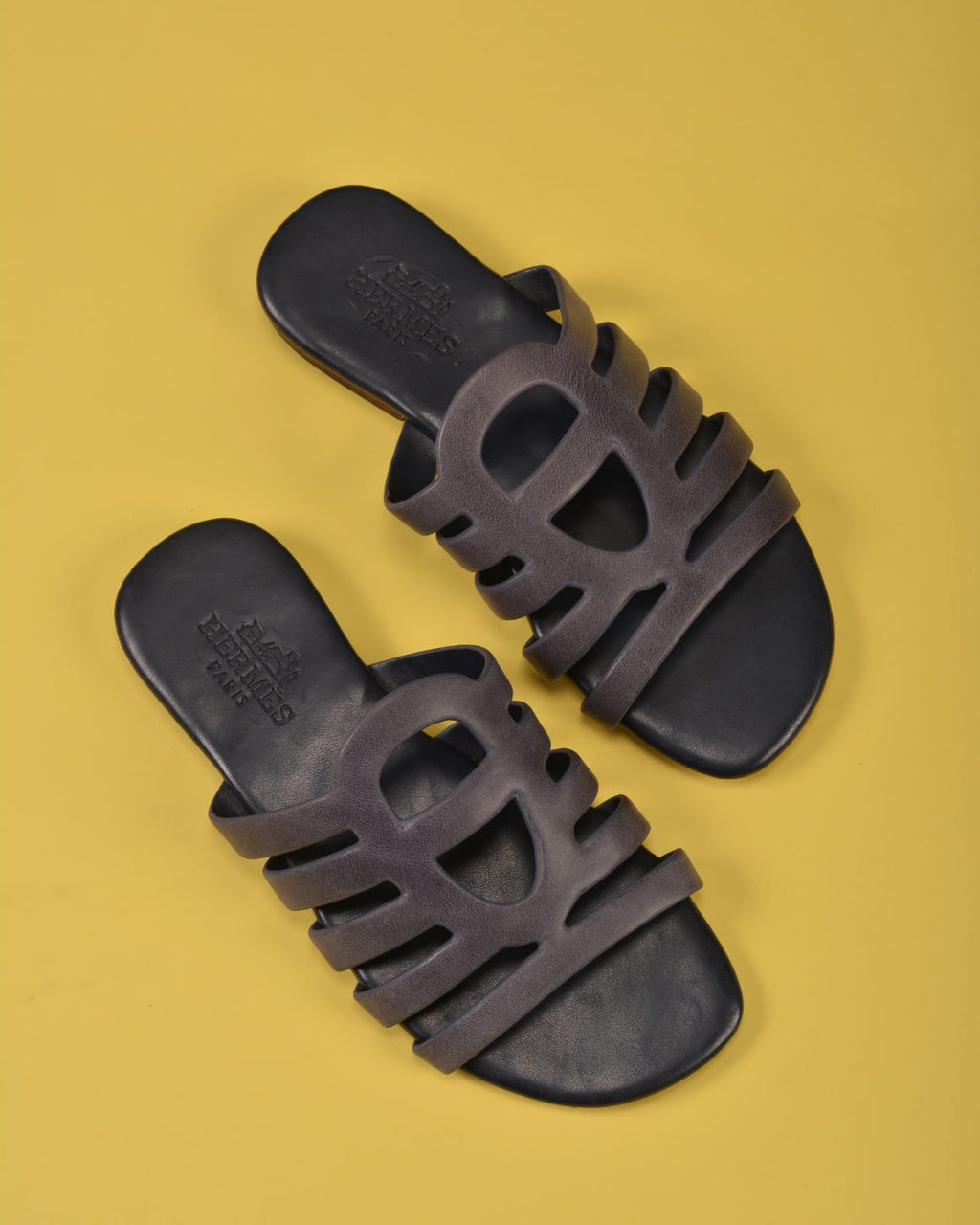 Sandal in calfskin with "Chaine d'Ancre" motif and strappy silhouette.