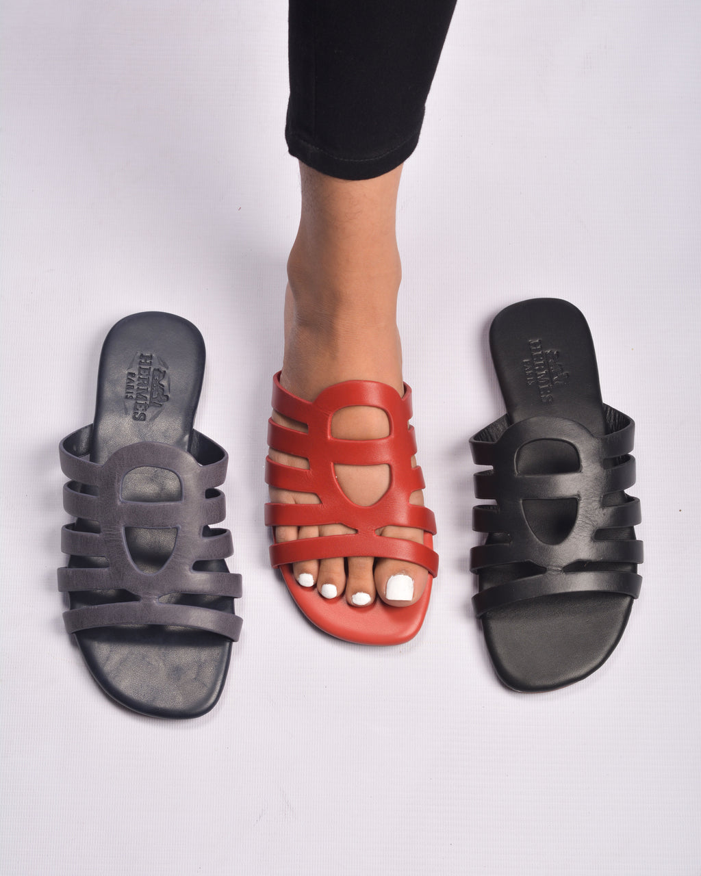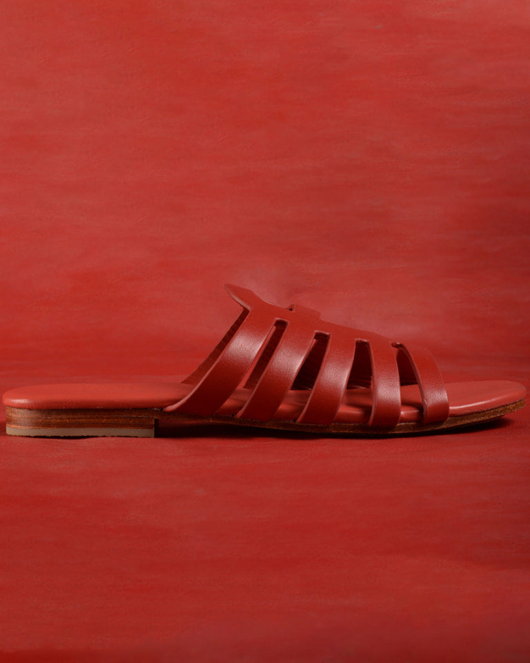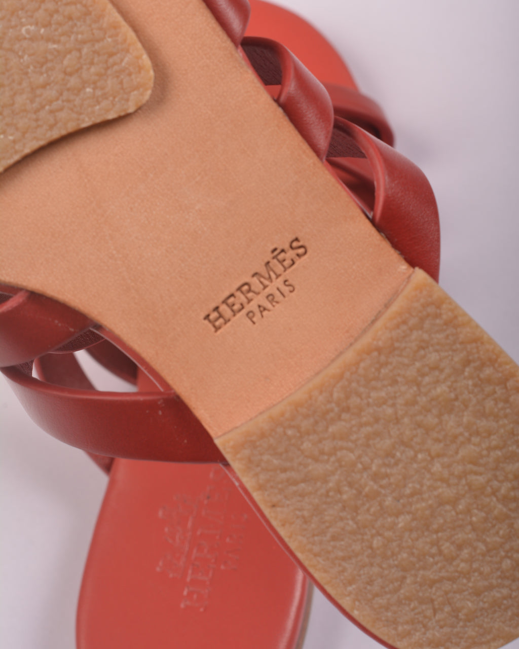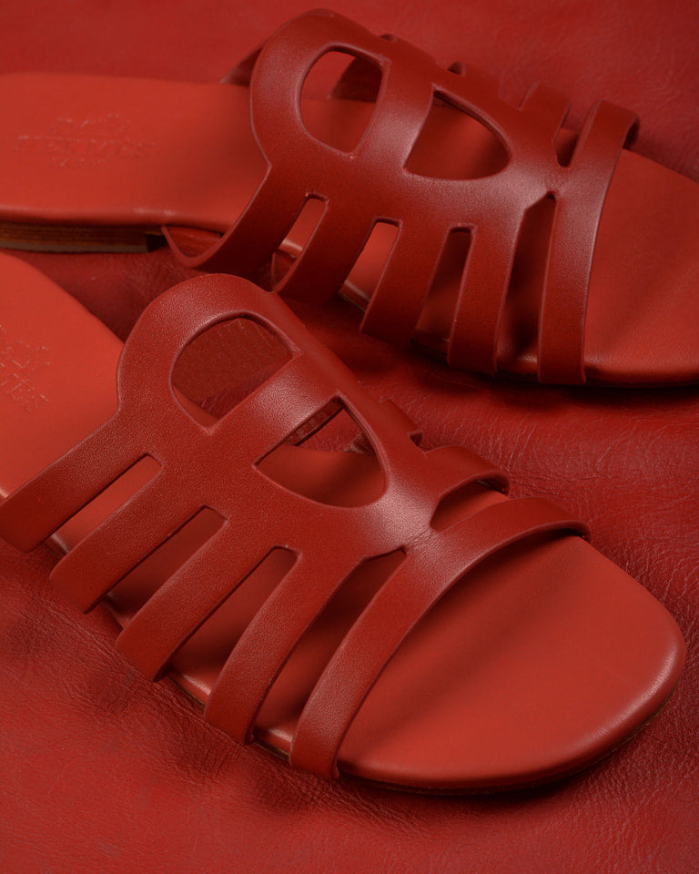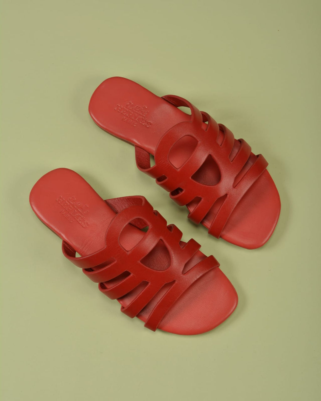 Sandal in calfskin with "Chaine d'Ancre" motif and strappy silhouette.