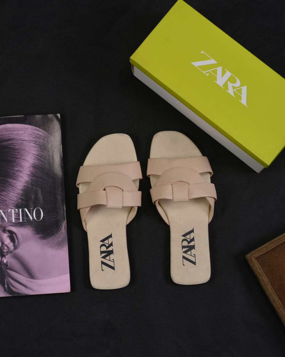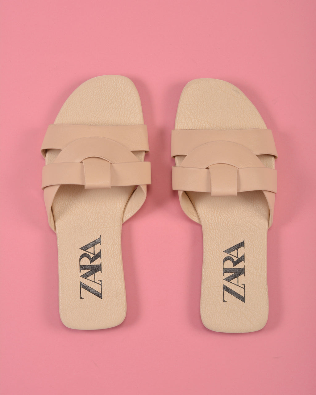 ZARA LOW HEEL CROSSED LEATHER SANDALS BEIGE