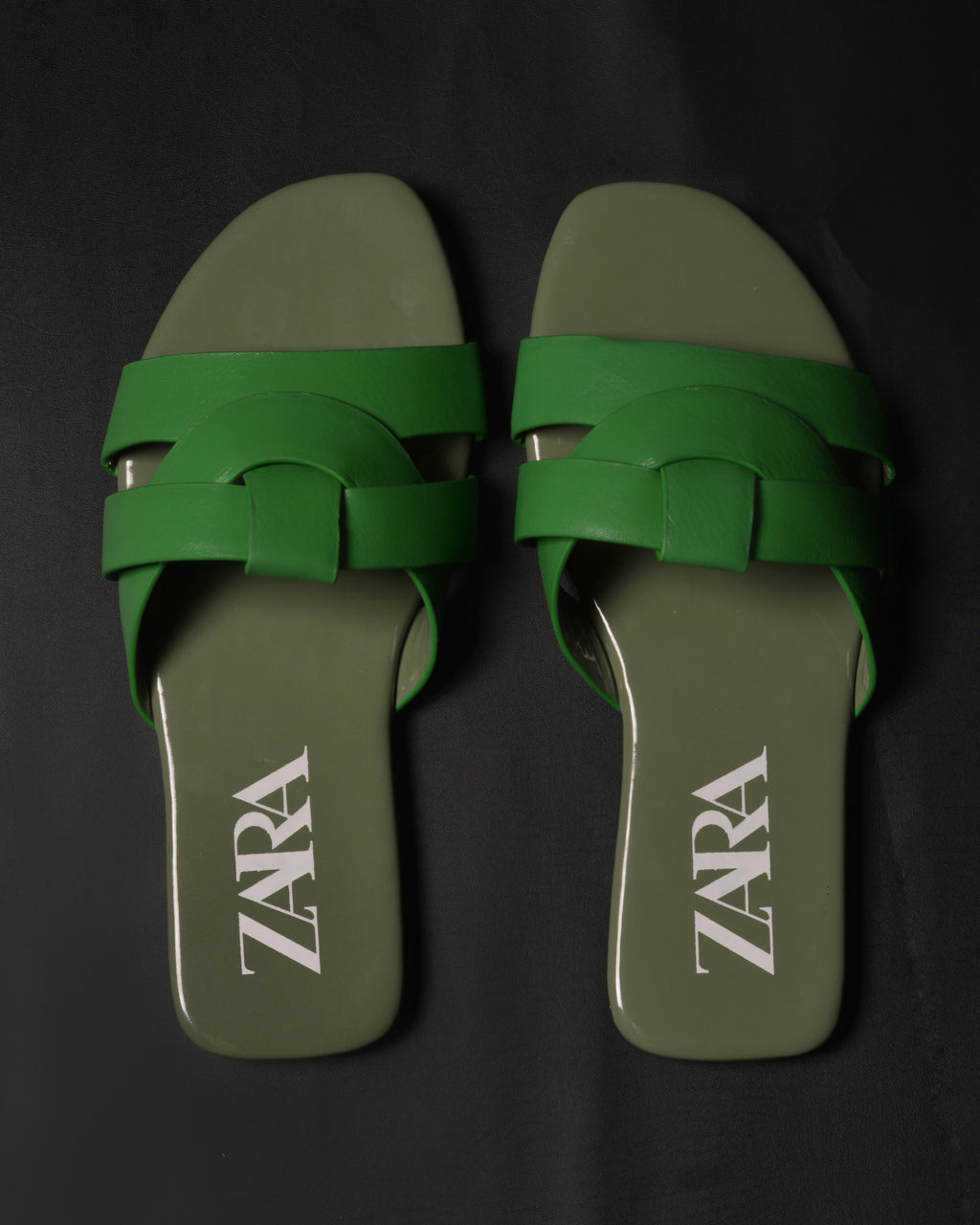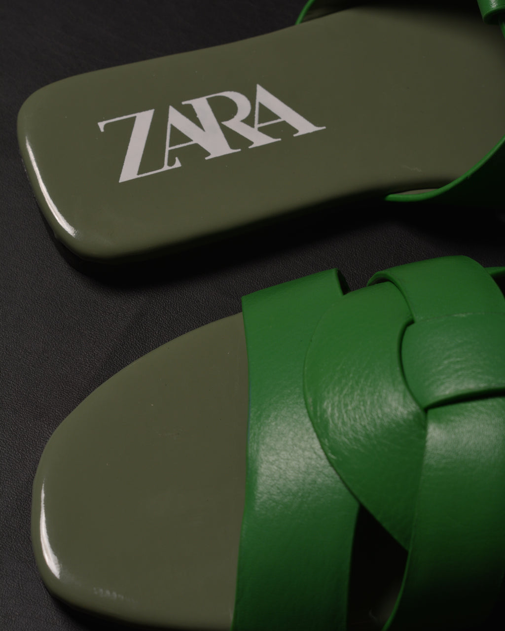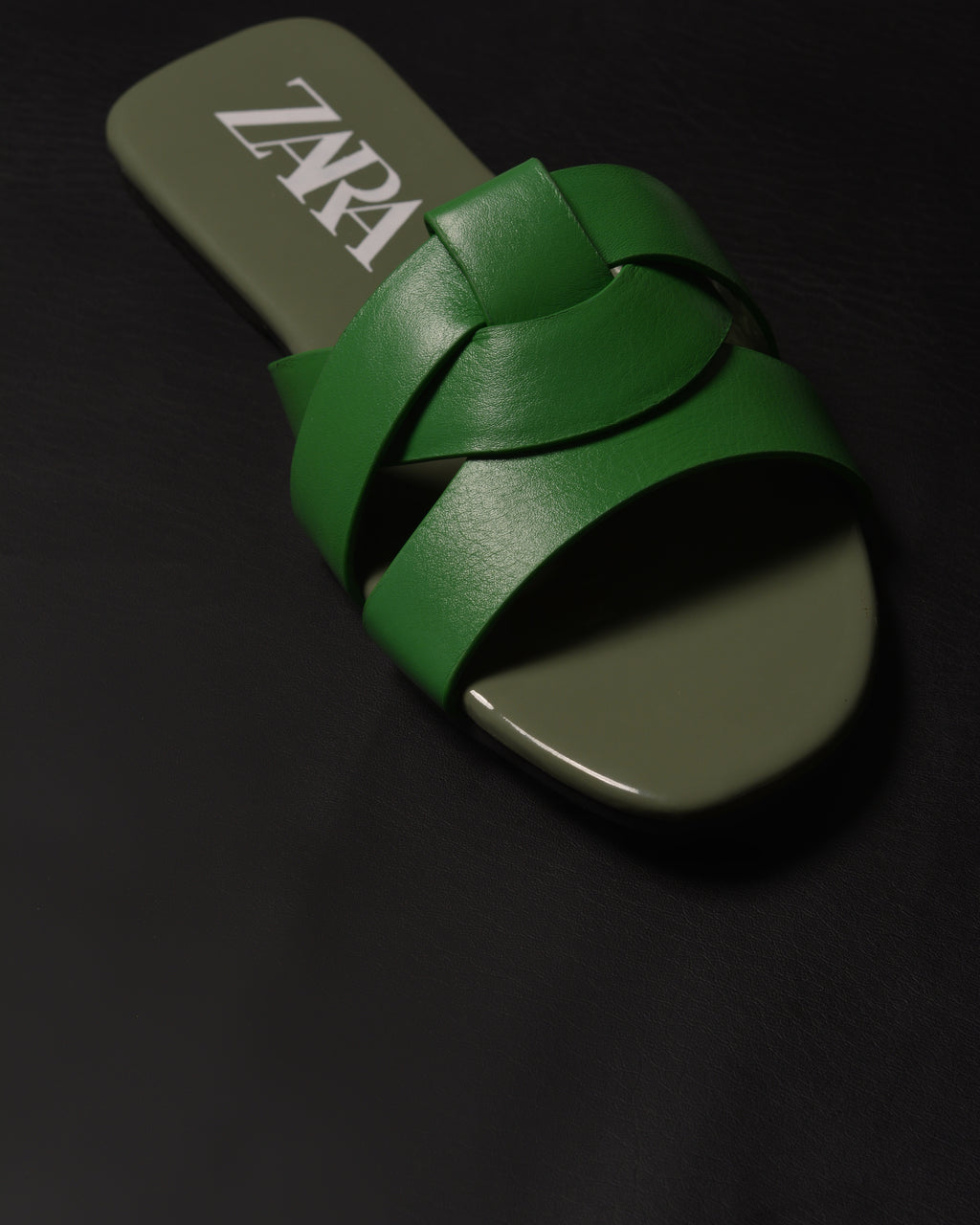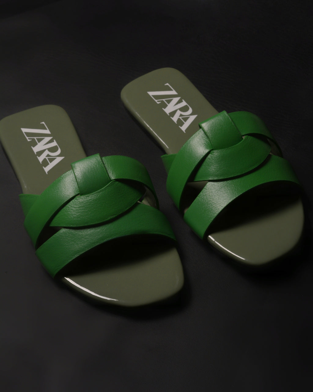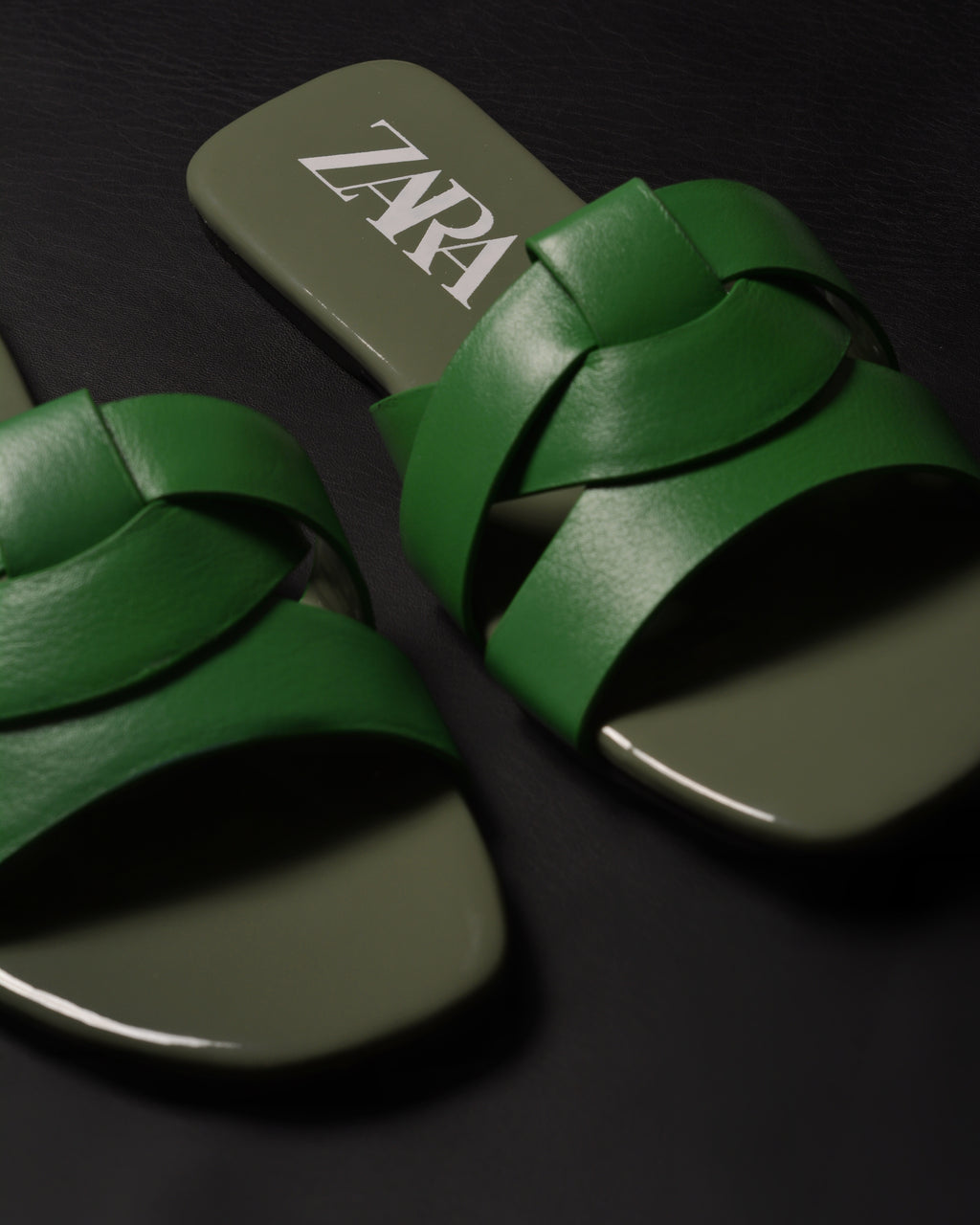 Low-heeled leather sandals with crossed straps at front.Heel height: 0.4 inches (0.9 cm)