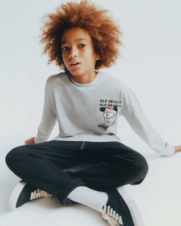 ROUND NECK LONG SLEEVE T-SHIRT. “AMONG US” TM PRINT. CONTENTS AND CARE JOIN LIFE Care for water: produced using less...