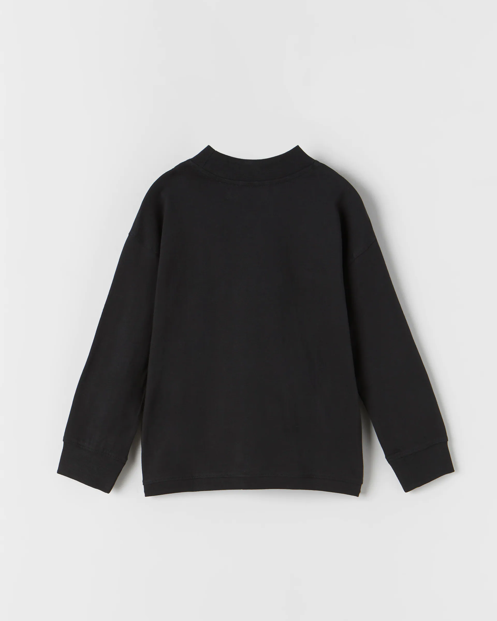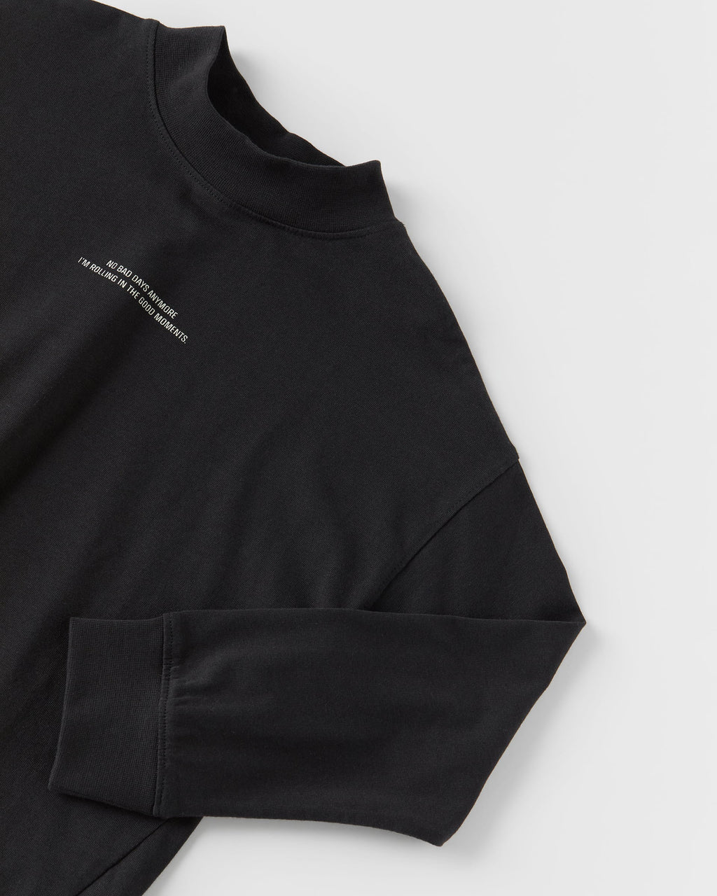 HIGH COLLAR TOP WITH LONG SLEEVES. TONAL TEXT PRINT AT CHEST.