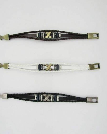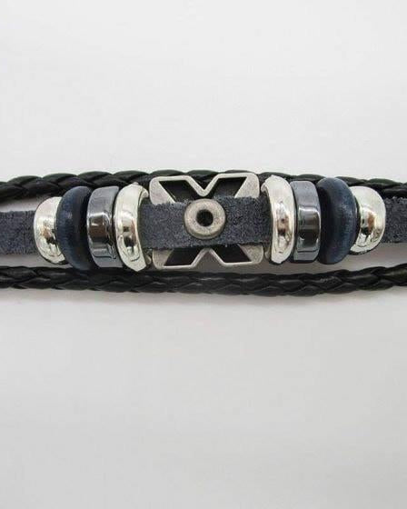 Bracelets - X Letter Shaped Braided Bangle Beads - Black