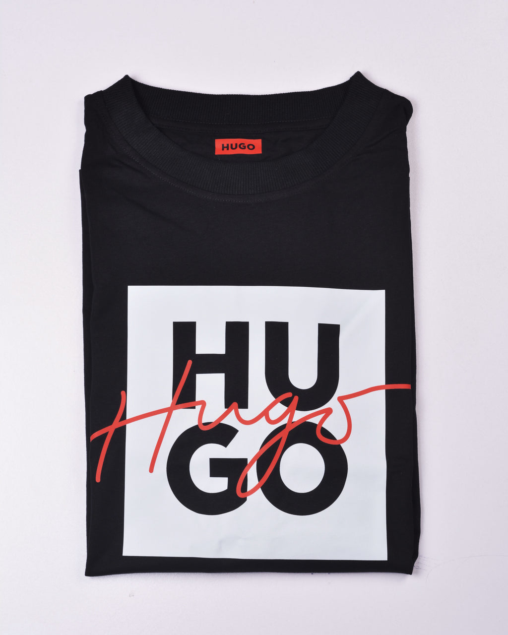 A casual T-shirt in cotton jersey by HUGO Menswear. Cut to a straight fit  is printed with a logo at the chest.