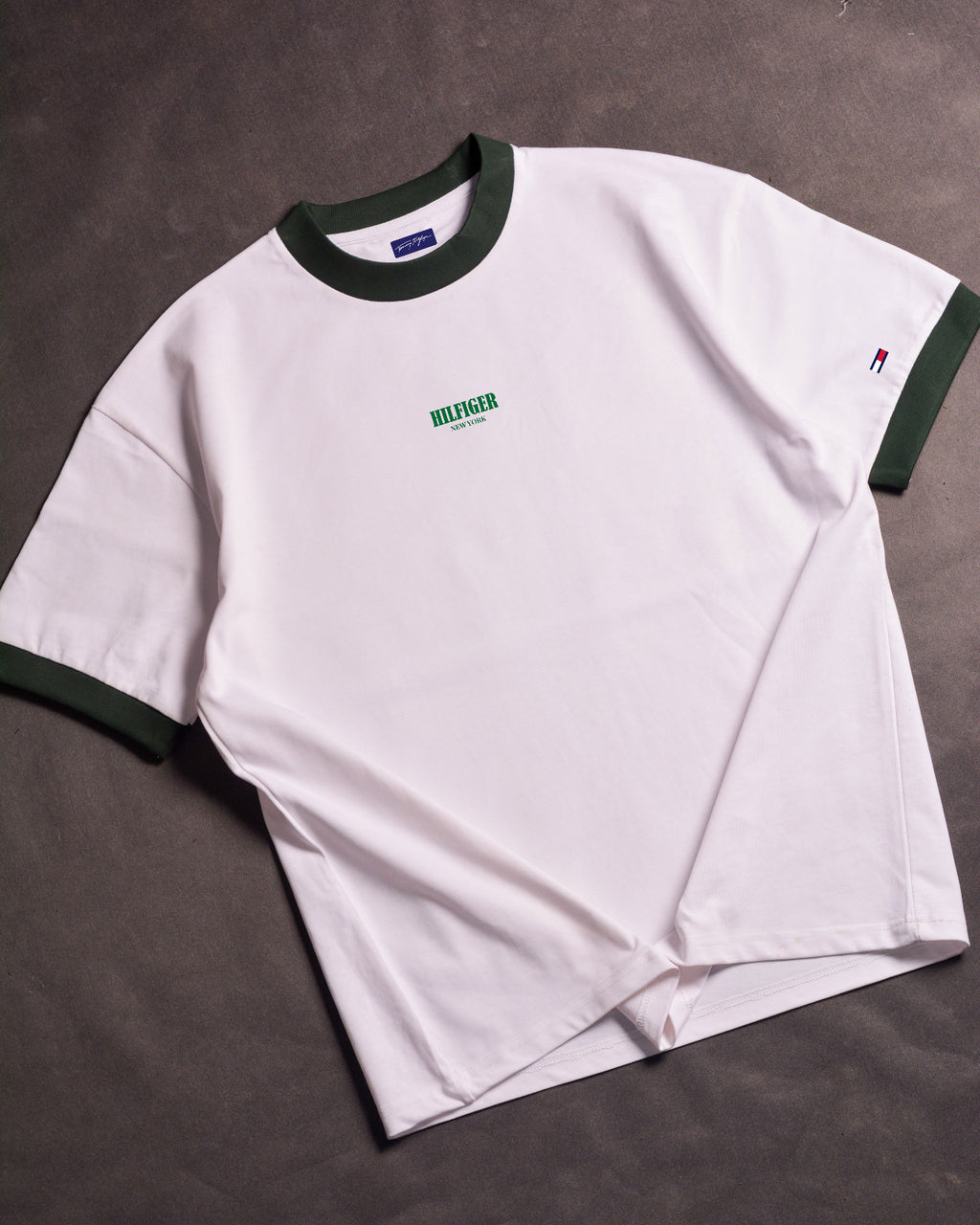 Tommy Hilfiger Monotype Ringer White/Green Drop Shoulder T-Shirt