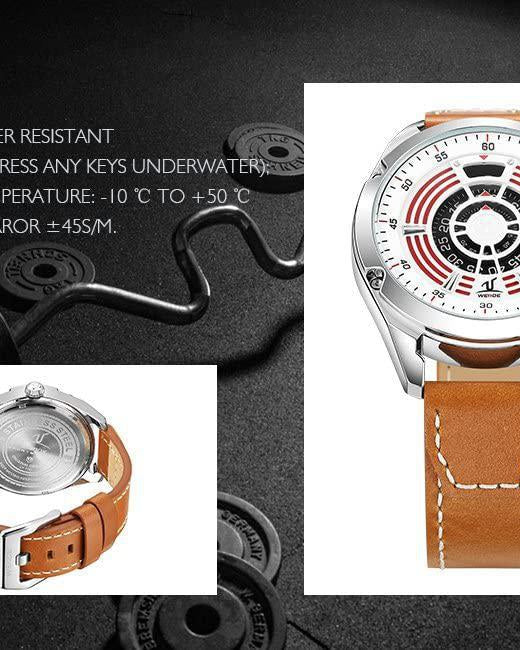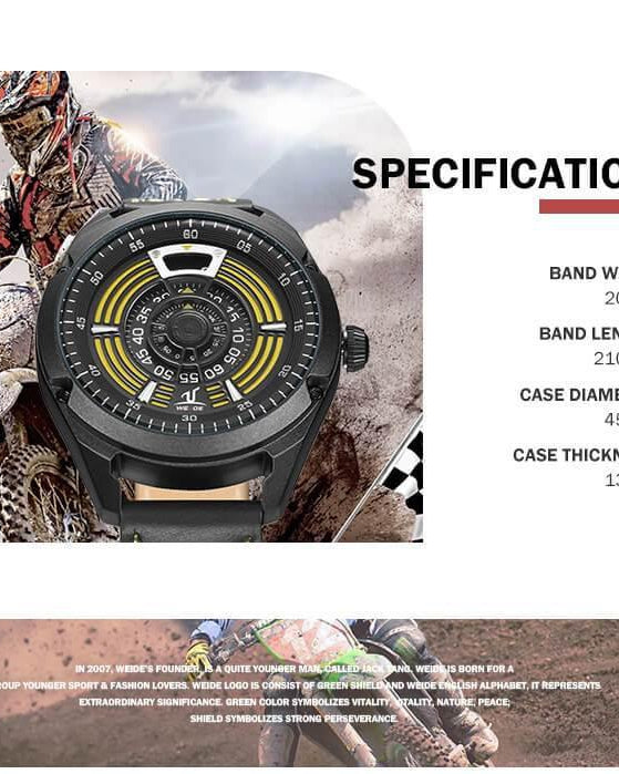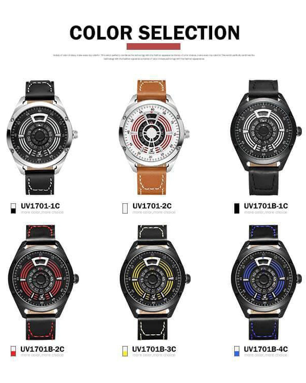 BRAND: WEIDEITEM: UV1701STYLE: SPORT,CASUAL,BUSINESSDISPLAY: AnalogMOVEMENT: ORIGINAL JAPAN MIYOTA 2115 QUARTZFeature:- The model (UV1701) with Six attractive versions;- Classic design only for 2017;- JAPAN MIYOTA 2115 quartz movements with original SONY SR626SW batteries;- Cool & specially designed WEIDE watch;- Genuine leather watch band and stainless steel buckle;- Unique Electroplating 3D WEIDE & Universe Logo.- Environmental IP black vacuum electroplating case, and pass the ROHS standard;- Watch crown with environmental IPS bronze electroplating;- 30 meters water resistant(Please Don't Press Any Keys Underwater);- Operating temperature: -10 ℃ to +50 ℃- Walking on error ±45S/M.Specification:Case Diameter: 4.5cmCase Thickness: 1.3cmBand Length: 20cmBand Width: 2.0cmComponents Included:1 x Genuine WEIDE Watch1 x Original WEIDE Warranty Card